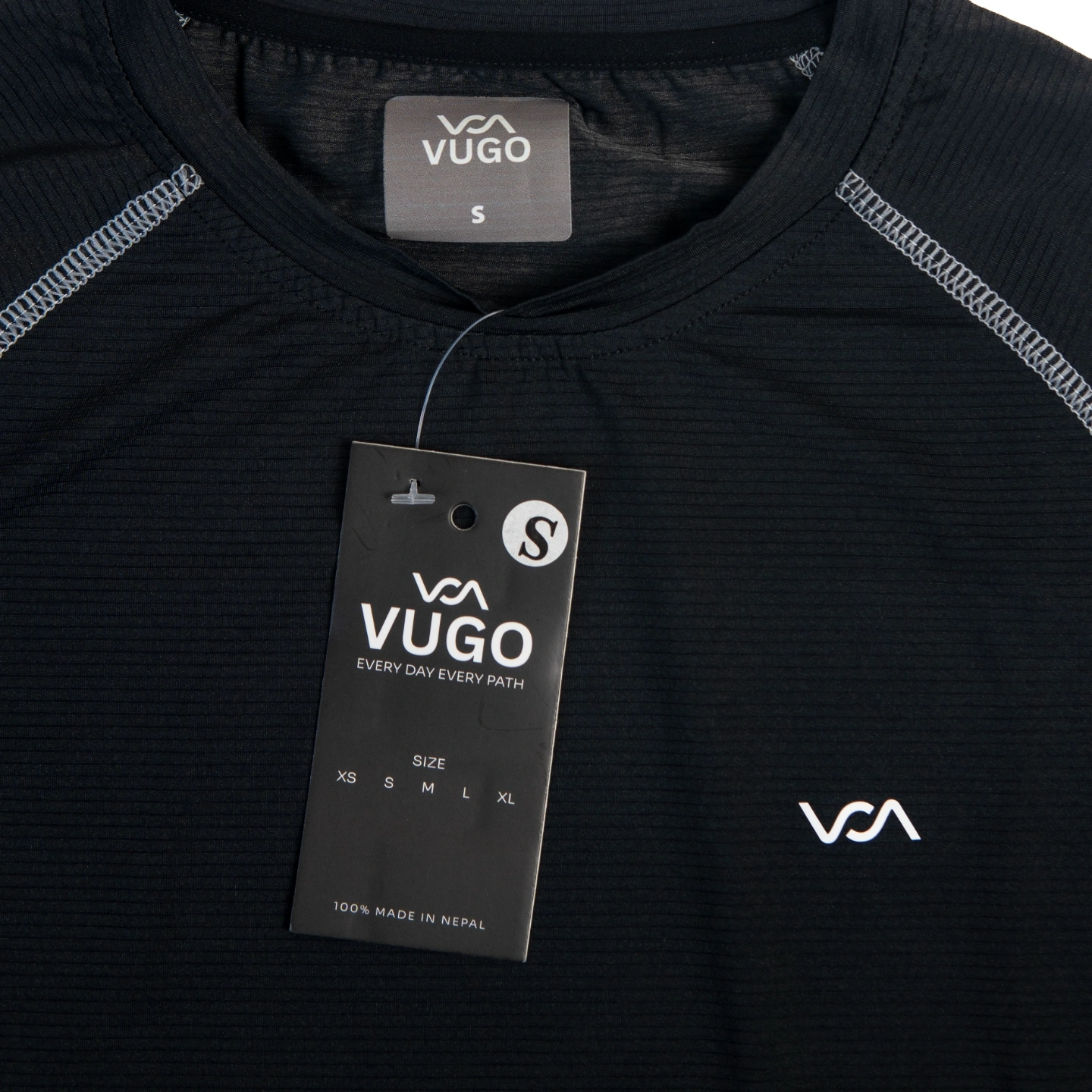 Logo: Vugo logo on the right side of chest.