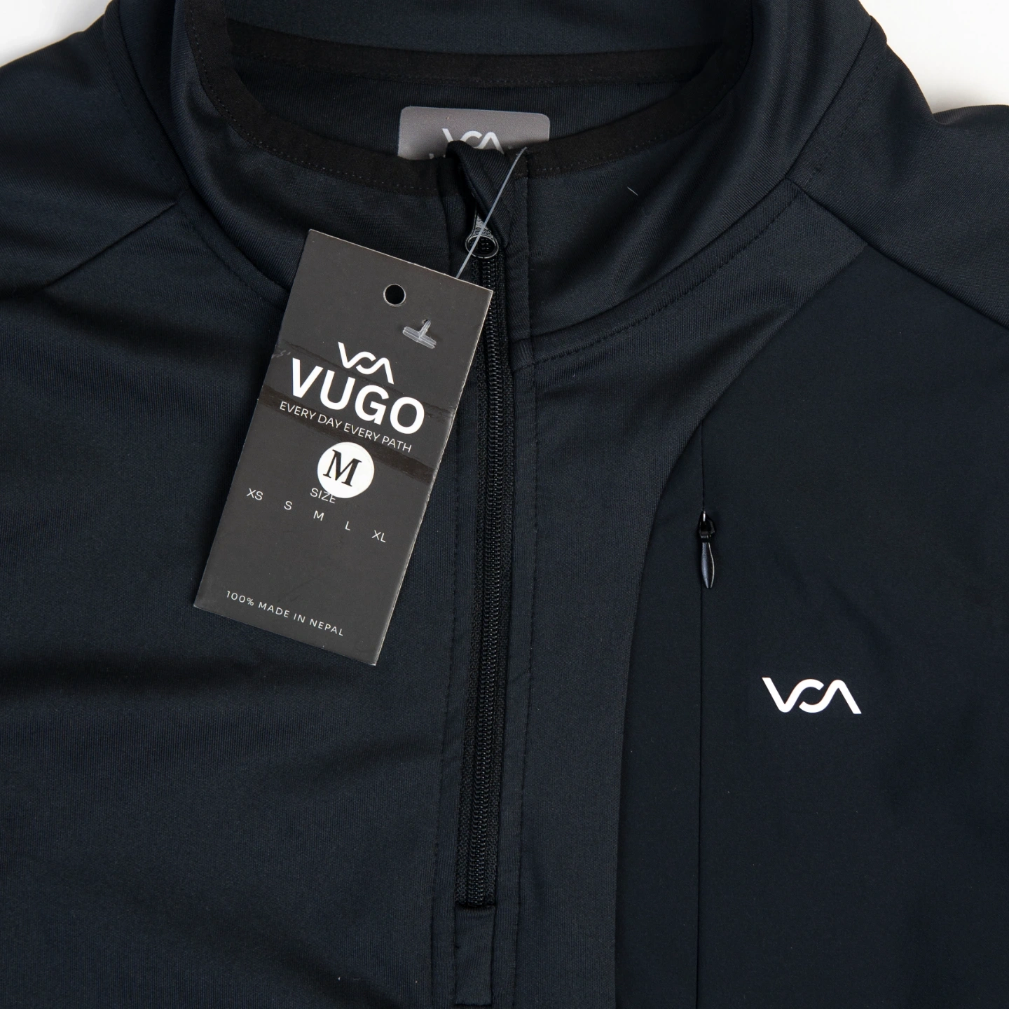 Logo: Vugo logo on the right side of chest.